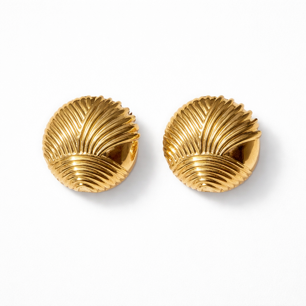 A quiet nod to classic forms. With rounded edges and ribbed texture, these gold studs evoke heirloom pieces with modern ease. Elegant for everyday, distinctive enough for after-hours.