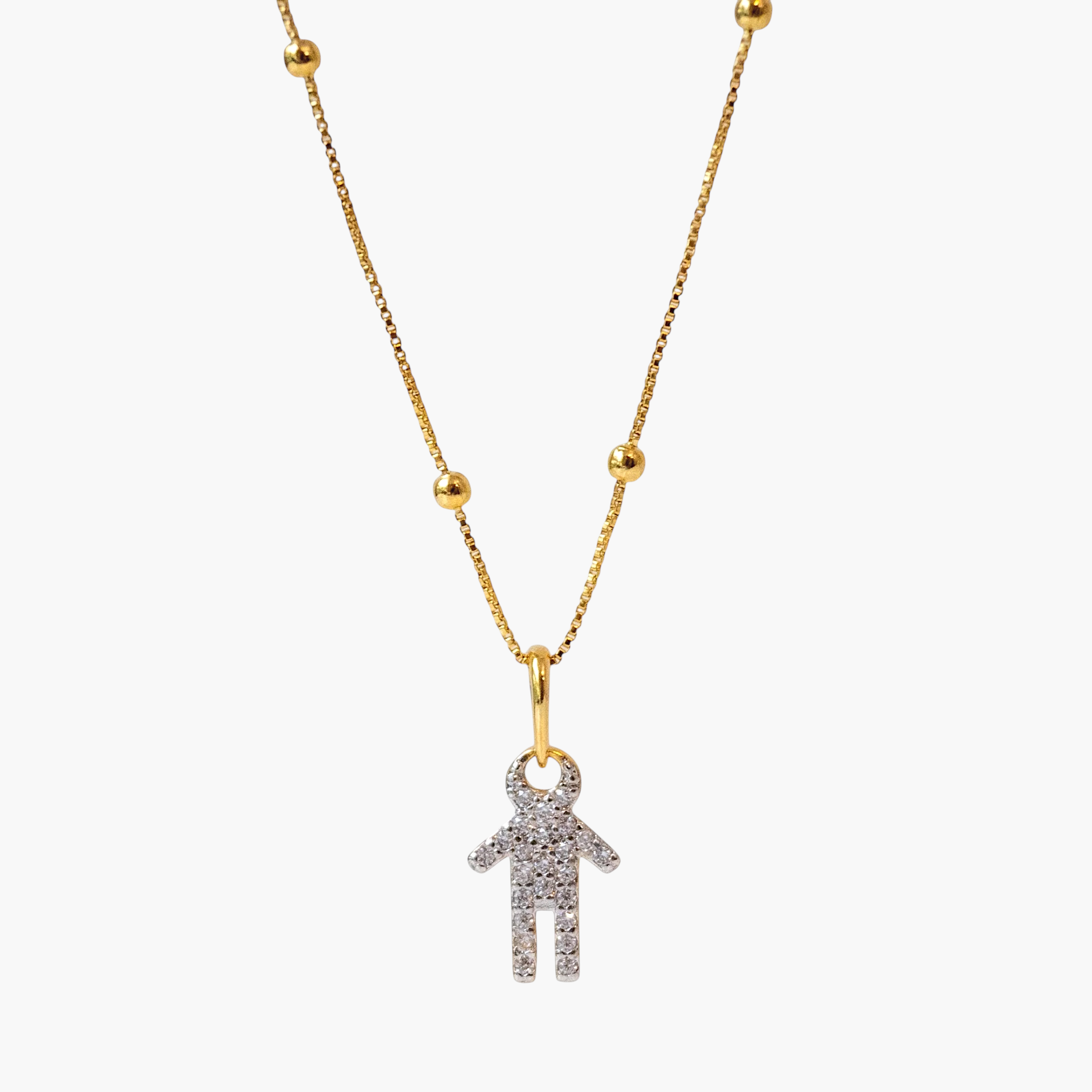 This delicate gold-tone necklace features a minimalist boy silhouette, symbolizing a son's eternal presence in a mother's heart. It is a tender reminder of unconditional love, always close to you.