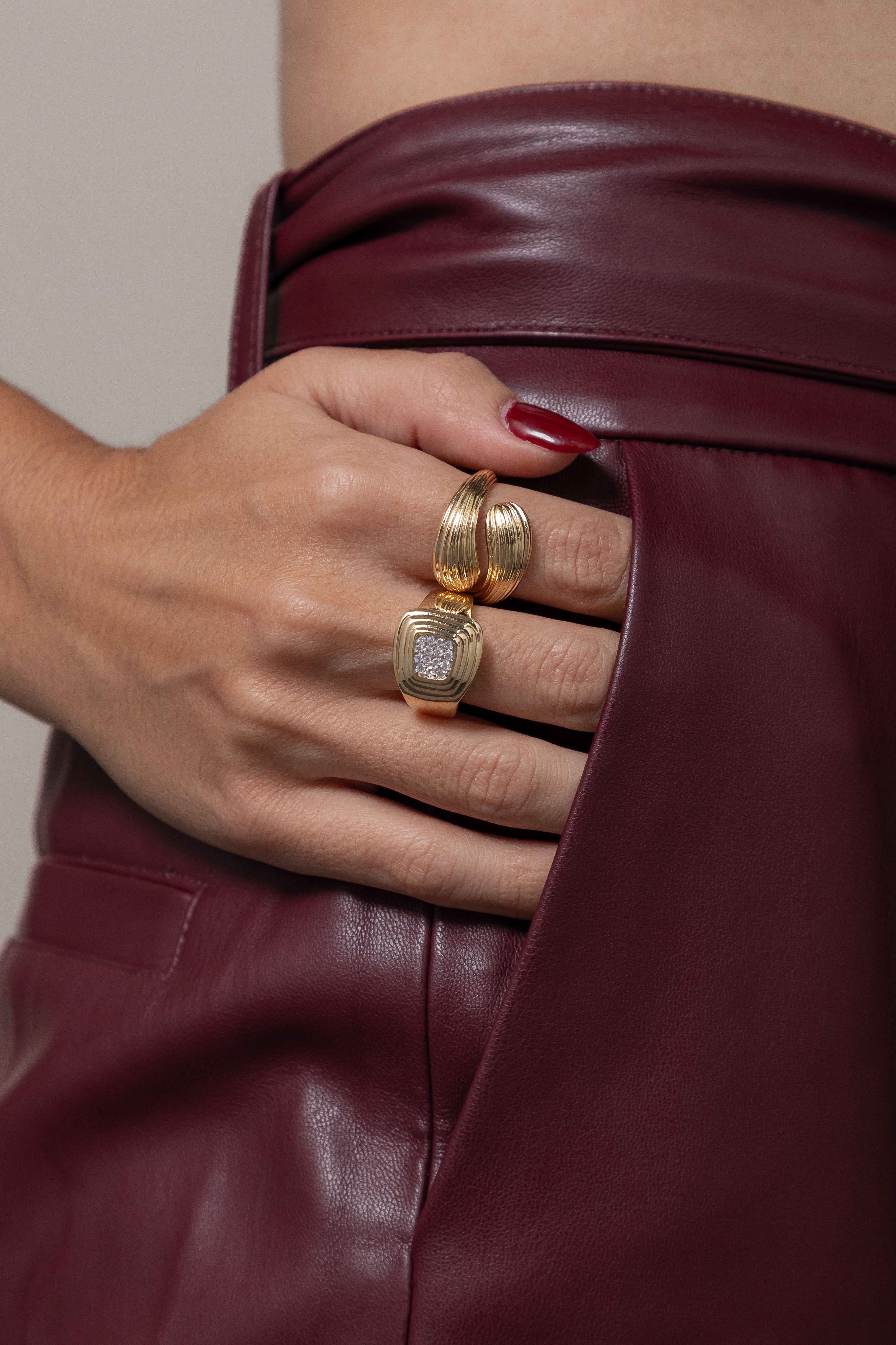 A sculptural twist on a classic signet. The Iconique Square Ring features soft, stepped contours that draw the eye to a center panel of pavé cubic zirconia, catching the light with every movement.