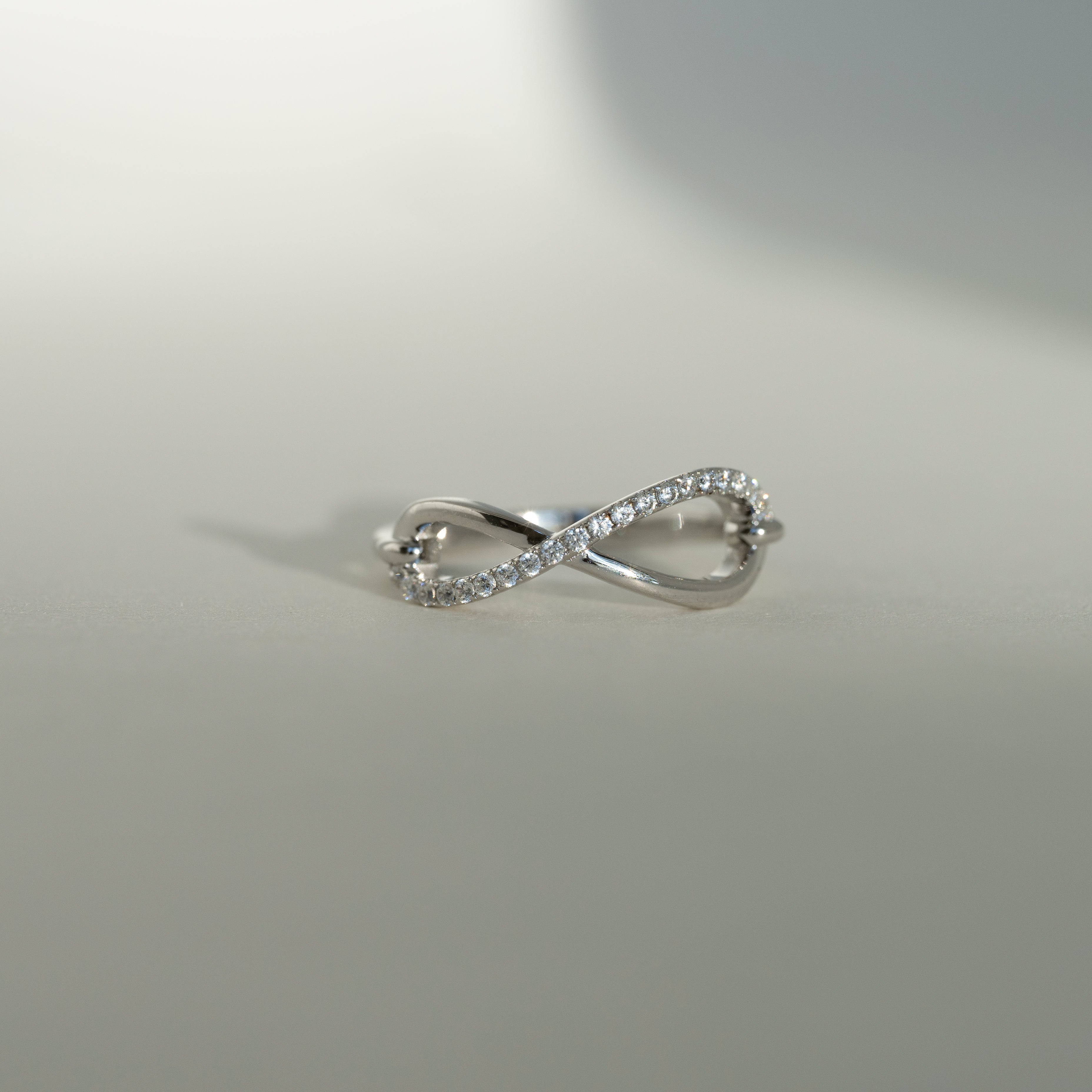 Crafted in 925 sterling silver with rhodium plating, this infinity ring combines timeless elegance with enduring symbolism. Delicate pave cubic zirconias catch the light beautifully, adding sparkle and dimension to the design. The infinity symbol represents boundless love, eternal connection, and limitless possibilities—making this piece a meaningful choice for personal milestones or cherished relationships. The rhodium finish ensures a brilliant, long-lasting shine while protecting against tarnish. Whether worn as a daily reminder of what matters most or gifted to someone special, this sophisticated ring transcends trends with its classic appeal and profound significance.