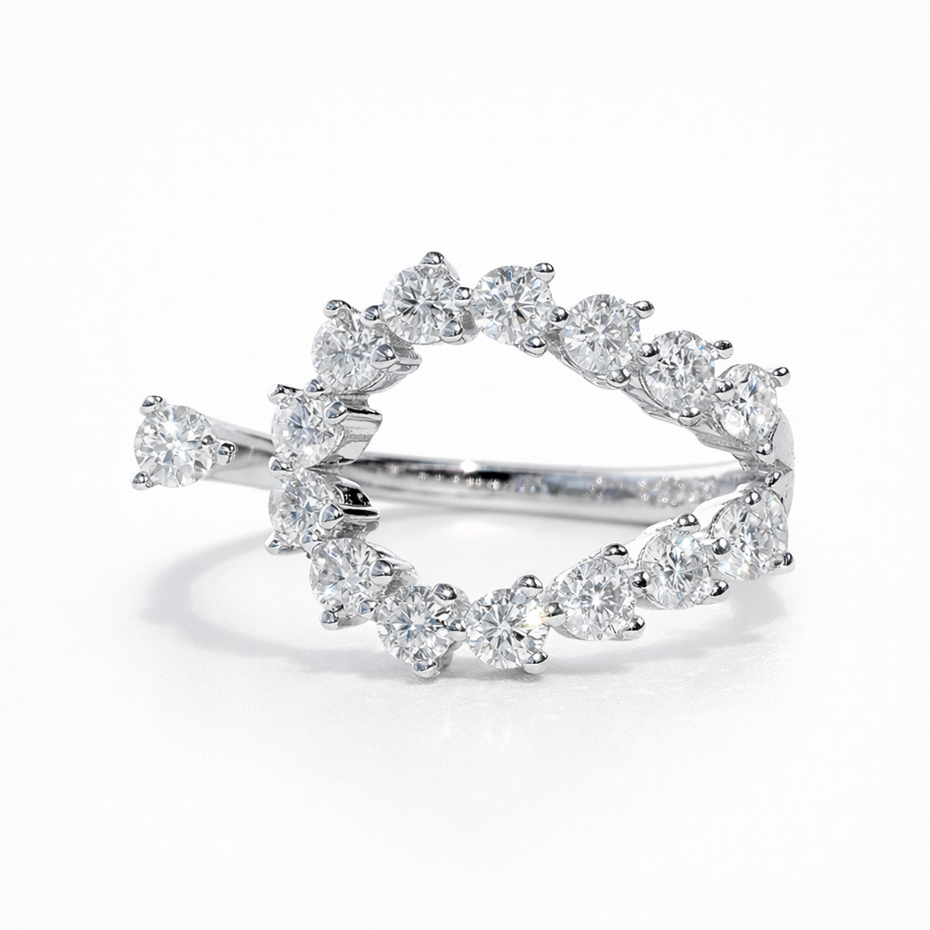 This elegant band features a striking marquise-cut moissanite set within an open framework that captures light beautifully. Crafted from 925 sterling silver and finished with rhodium plating for lasting brilliance, it strikes the perfect balance between delicate and statement-making. Versatile enough to wear solo or layer with other pieces, this refined design brings an understated luxury to any collection.